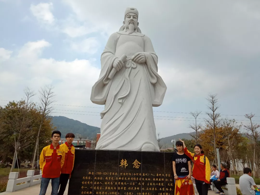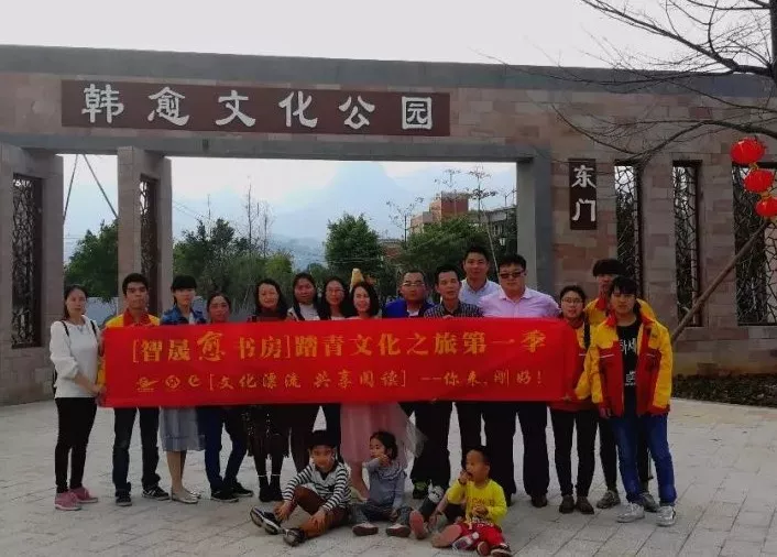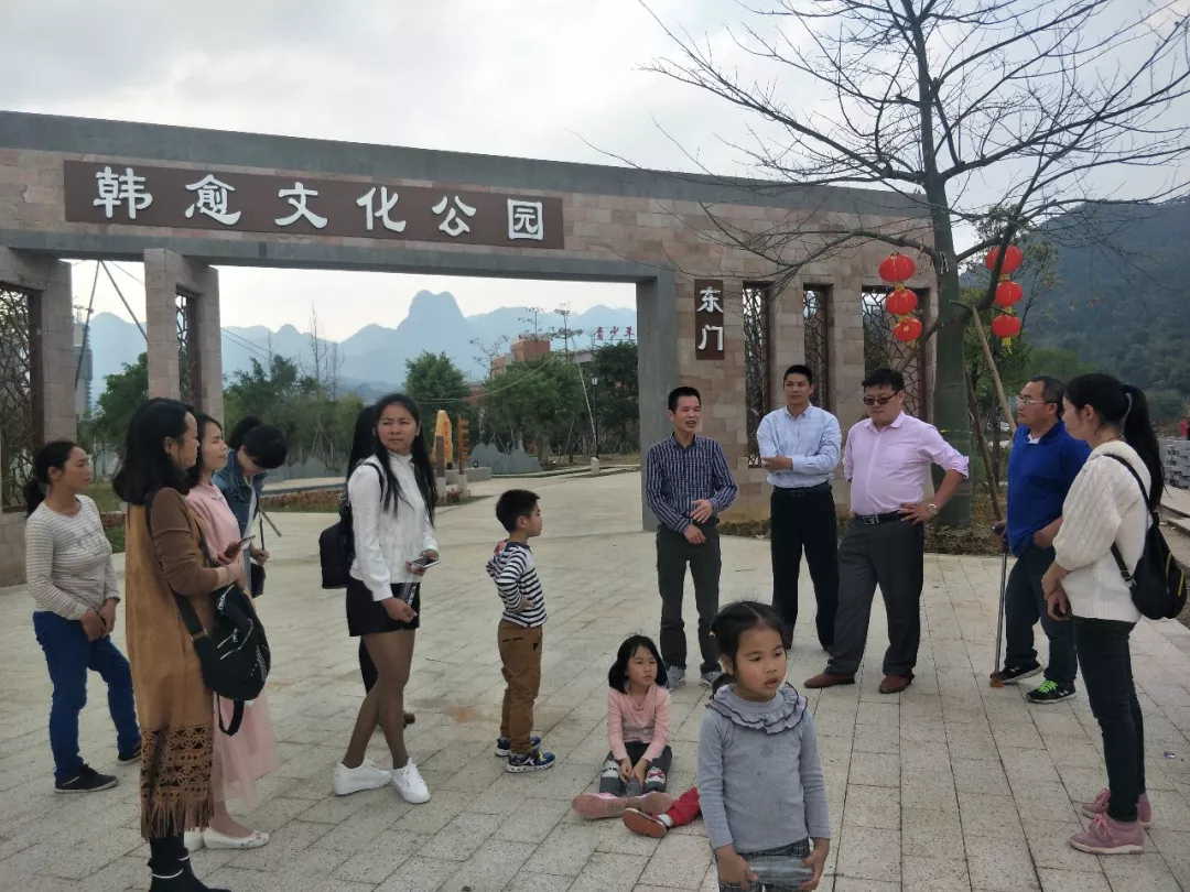 当天下午,【智晟愈书房】读书会成员及一众文化志愿者还到了县韩愈文化公园内踏青游览,县图书馆邓馆长在主题公园内和大家讲述了韩愈在阳山的故事和对阳山所作出的贡献。