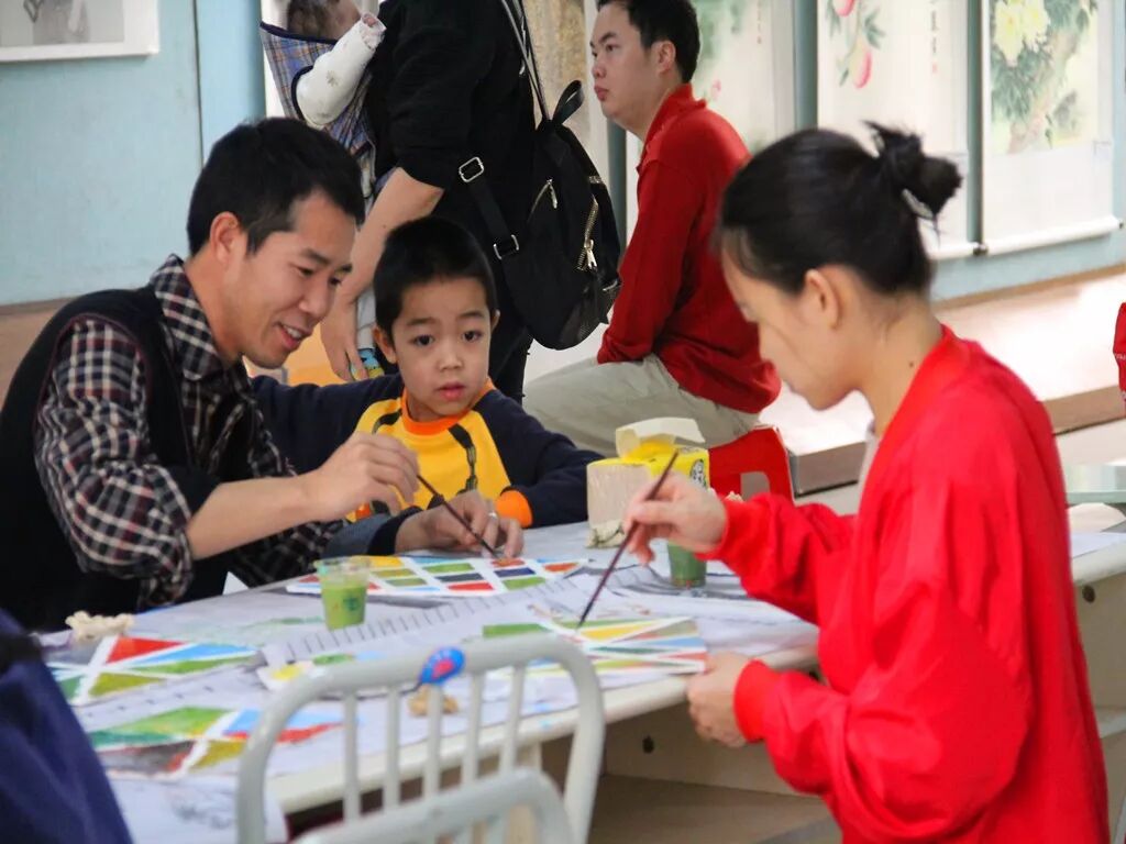 孩子们由爸爸或妈妈陪伴,经过老师们的指导,看似信手涂鸦、其实是描绘着自己的梦想。