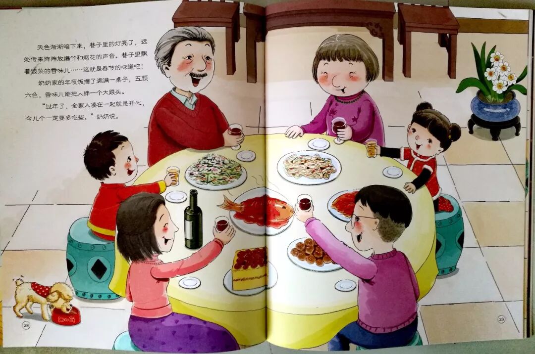 比如:来图书馆听一场故事妈妈讲那过年的故事。