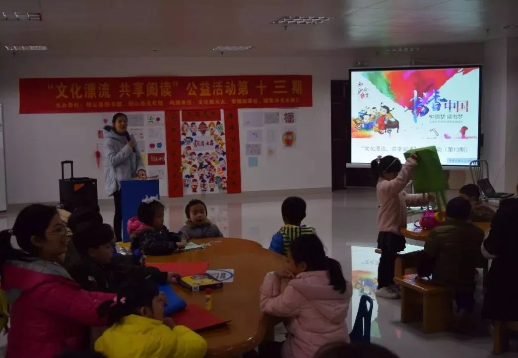 今天上午10-11时,“文化漂流、共享阅读”第十三期亲子阅读(公益)故事会在图书馆二楼青少儿活动室成功举办。