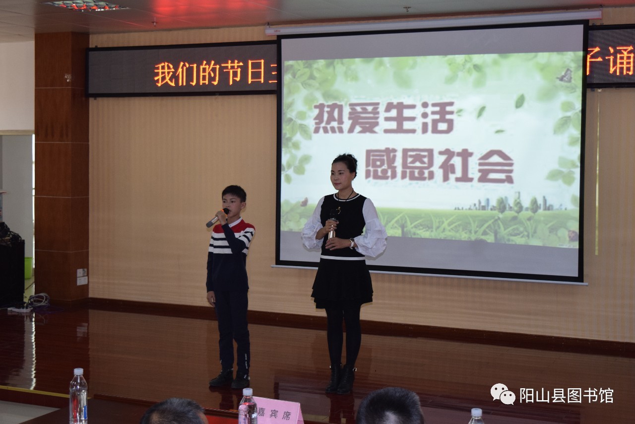 今天上午九点三十分,由县图书馆、文化馆、实验小学联合主办的“‘我们的节日’主题活动——‘中华经典亲子诵读比赛’决赛”在县图书馆综合报告厅顺利举行。