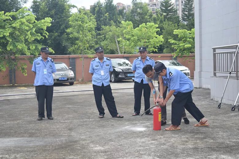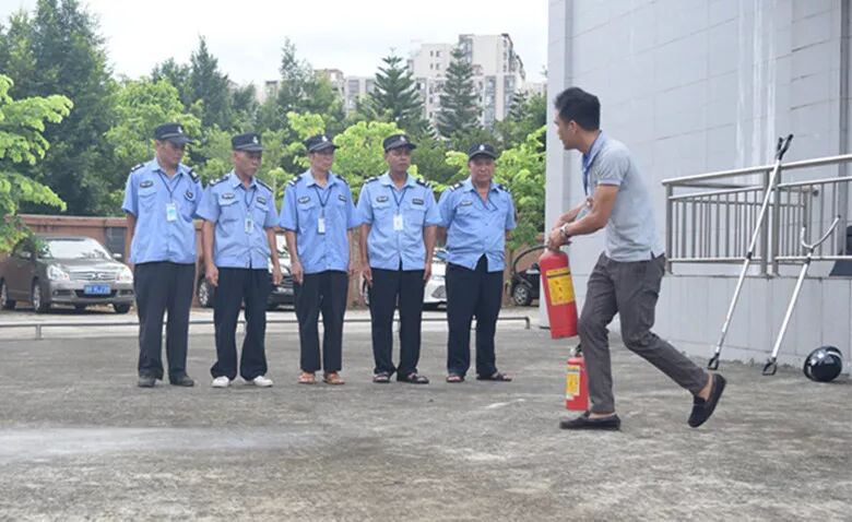 针对工作中可能出现的火灾这一突发事件,安保人员还现场模拟不同场景演练了各种火灾情景的应对措施和应急处理方法。